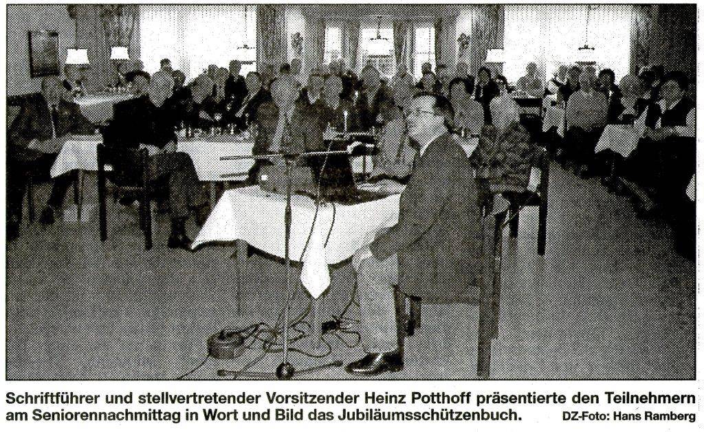 Dülmen {hra}. „Erster Gedanke war 1998 die Herausgabe einer Festzeitung“, erklärte Josef Lücke, Vorsitzender des Schützenvereins Börnste, bei der Vorstellung der Vereins-und Heimatchronik aus Anlass des 250-jährigen Bestehens des Schützenvereins am Donnerstag im Rahmen des traditionellen Seniorennachmittages im Waldfrieden.