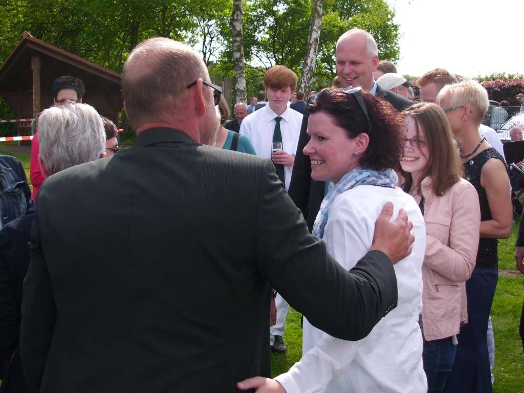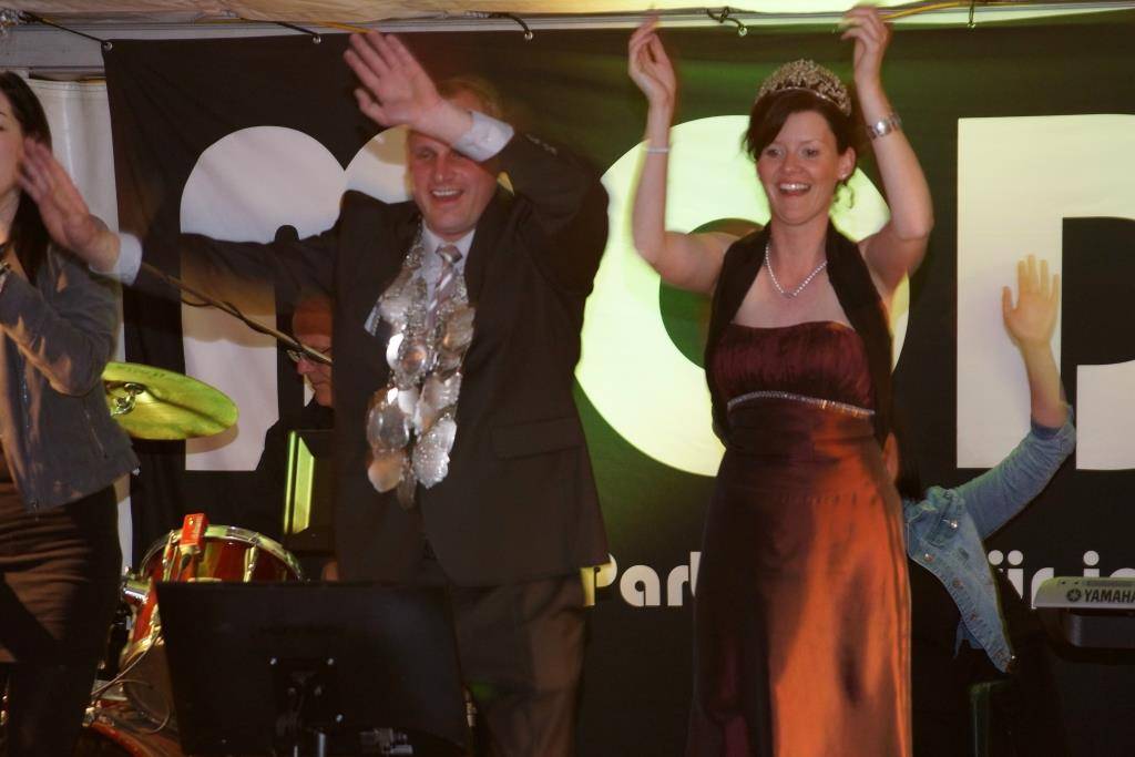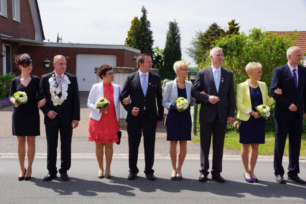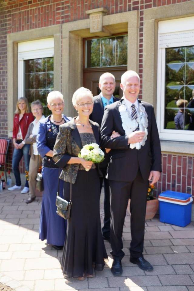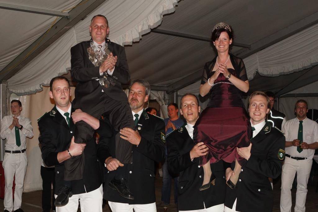 Seine Königin Katja Schlaut hat den entscheidenden Schuss gar nicht erst gesehen. „Ich hab es nicht wirklich mitgekriegt“, gestand sie und war ziemlich nervös, obwohl sie von Brambrinks Vorhaben wusste. Zur Ehrendame ernannte der neue König seine Frau Jennifer. Ehrenherr ist Patrick Dumpe.