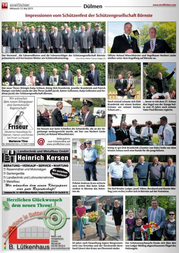 Bericht der Dülmener Zeitung, Dienstag, 12. Mai 2015