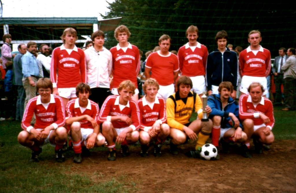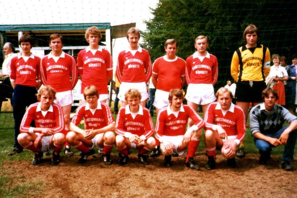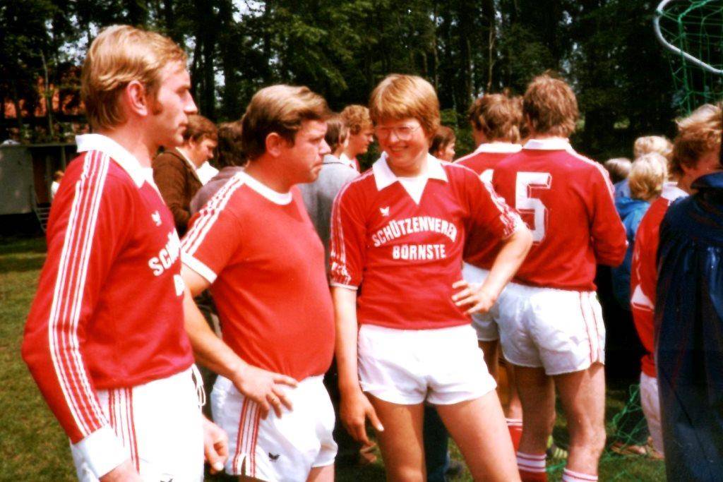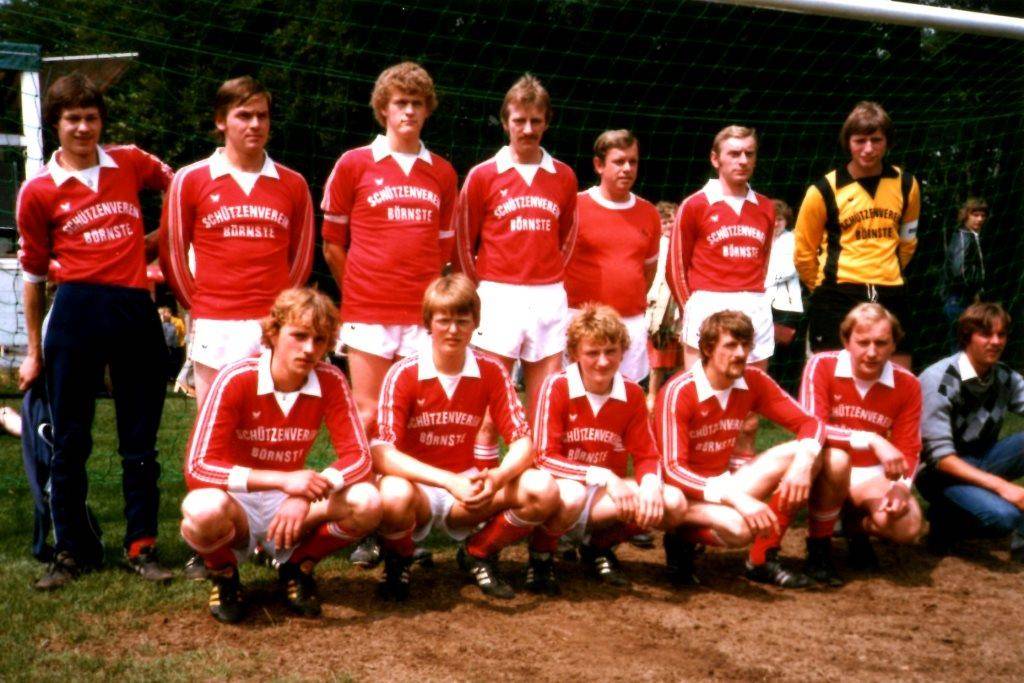 Am 29.6.1981 fand unter der Regie der Börnster Schützen das vor einem Jahr ins Leben gerufene Fußballturnier, an dem die umliegenden Vereine teilnahmen, statt. Mieses Wetter am Morgen ließ bei den Veranstaltern und den Aktiven Zweifel am Gelingen aufkommen. Aber entsprechend der alten Regel „man soll den Tag nicht vor dem Abend loben“ änderte sich das Wetter und auch die Stimmung. Bier, Würstchen und Erbsensuppen fanden bei Zuschauern und Spielern reißenden Absatz. So gestärkt waren auch die Spieler des FCB nicht zu bremsen. Sie gewannen souverän den Wanderpokal, den es im nächsten Jahr selbstverständlich zu verteidigen gilt und auch Paul Brambrink, Hubert Sträter und andere Aktive, die vor dem Anpfiff nervös wie Galopper vor dem Start waren, ließen nach getaner Arbeit bis in die Nacht den altbekannten FCB-Schlachtruf nicht verstummen.