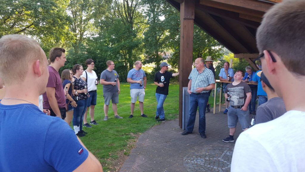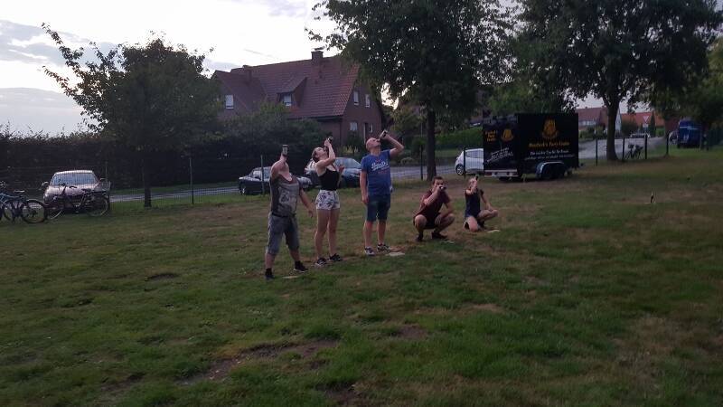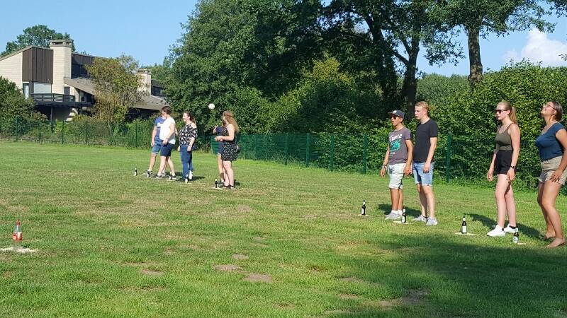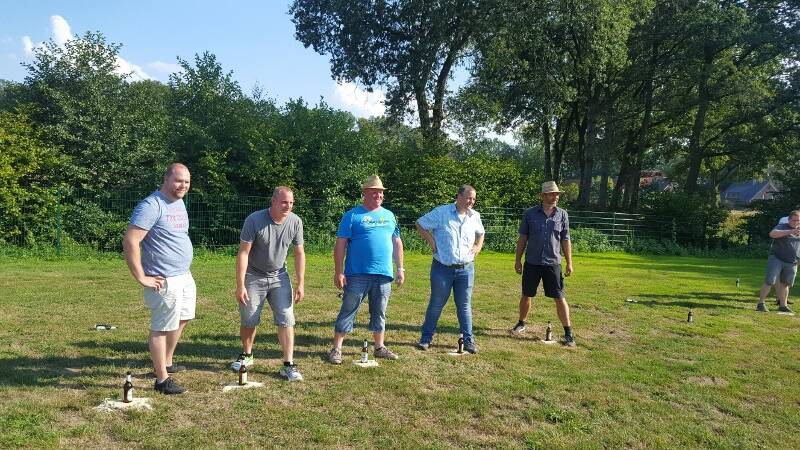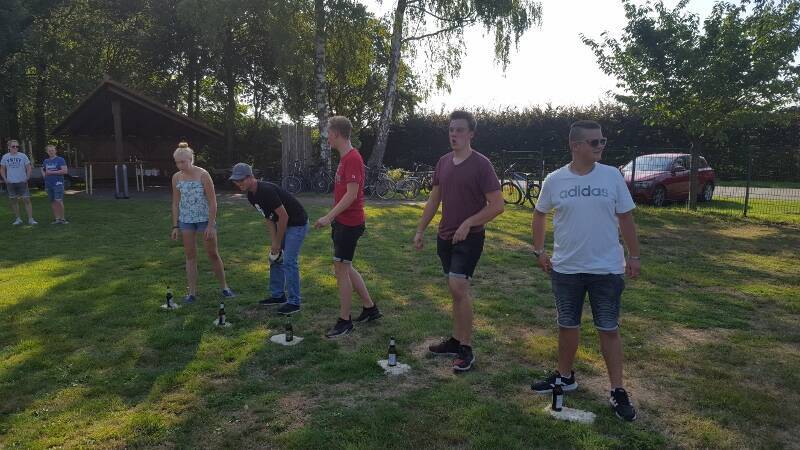 „Zwei Teams stehen sich, jeweils in Reihe aufgestellt, in einer Entfernung von etwa 10 Metern gegenüber. Jeder Spieler hat eine Bierflasche vor sich auf dem Boden stehen. Zwischen den beiden Teams in der Mitte des Spielfeldes befindet sich ein Ziel, üblicherweise eine viertel- bis halbvolle PET-Flasche, die von einem Ball getroffen und umgekippt werden sollte. Das Team mit dem Ball hat einen Versuch, das Ziel mit dem Ball zu treffen. Fällt das Ziel um, darf die Mannschaft, die geworfen hat, Bier trinken. Das gegnerische Team muss das Ziel wieder aufstellen und den Ball hinter die eigene Linie bringen. Sobald das gegnerische Team das Spielfeld wiederhergestellt hat, ruft es laut „Stopp“ worauf das Team, welches geworfen hat, den Trinkvorgang unterbrechen muss. Wenn beide Teams wieder bereit sind, darf das andere Team werfen. Sobald ein Team alle Biere ausgetrunken hat, hat dieses das Spiel gewonnen. Strafen können zum Beispiel vergeben werden, falls ein Spieler zu früh mit dem Trinken beginnt, nach dem „Stopp“- Ruf weitertrinkt oder siuch erbricht. Auch das Auslaufen von Bier (z.B. weil die Flasche überschäumt oder umfällt) kann bestraft werden. Mögliche Strafen können ein zusätzliches Strafbier für einen Spieler oder….sein.“