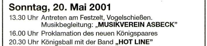 In diesem Jahr feiern die Börnster Schützenbrüder ein besonderes Fest, denn vor 250 Jahren wurde die Schützengesellschaft Börnste gegründet. Die Verantwortlichen hoffen auf ein fröhliches und geselliges Fest, zum dem alle Bürgerinnen und Bürger der Nachbargemeinden herzlich eingeladen sind, um in Börnste, wie der Vorsitzende des Vereins, Josef Lücke, in seinem Grußwort schreibt, „in fröhlicher Runde ein paar Stunden in Börnste zu verweilen“. Höhepunkte des Festes werden am Samstag das Kaiserschießen und am Sonntag das Königsschießen sein.