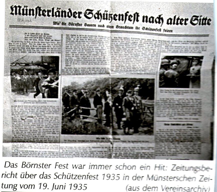 Der Münsterische Anzeiger brachte am folgenden Donnerstag ein Extrablatt mit der Überschrift: „Münsterländer Schützenfest nach alter Sitte. Wie die Börnster Bauern nach altem Brauchtum ihr Schützenfest feiern“ heraus und schilderten das Schützenfest in Wort und Bild. Die Zeitung liegt diesem Protokoll, solange sie erhalten werden kann, bei.