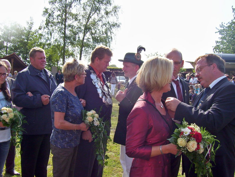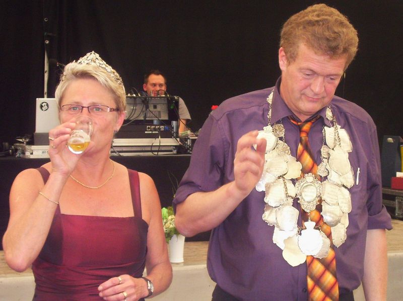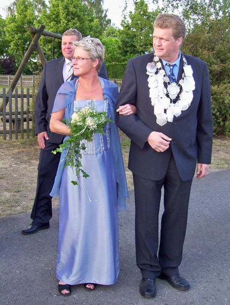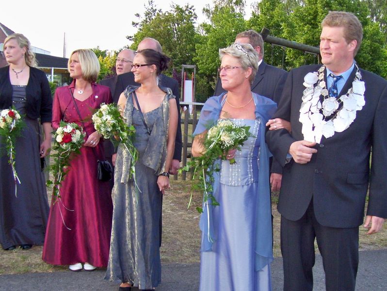 „Ich war fest entschlossen, mir nach mehreren vergeblichen Anläufen heute die Königskette zu erkämpfen“, sprudelte es aus Franz-Josef Schürhoff im ersten Glücksgefühl heraus, der auch einen verständlichen Grund für seinen erfolgreichen Angriff auf den Titel parat hatte: „1951, also vor genau 60 Jahren, war meine Oma Josefa Schürhoff die First-Lady an der Seite des damaligen Königs Franz Brambrink. Und ich wollte die Familientradition unbedingt fortführen, was mir ja auch glücklicherweise gelungen ist.“