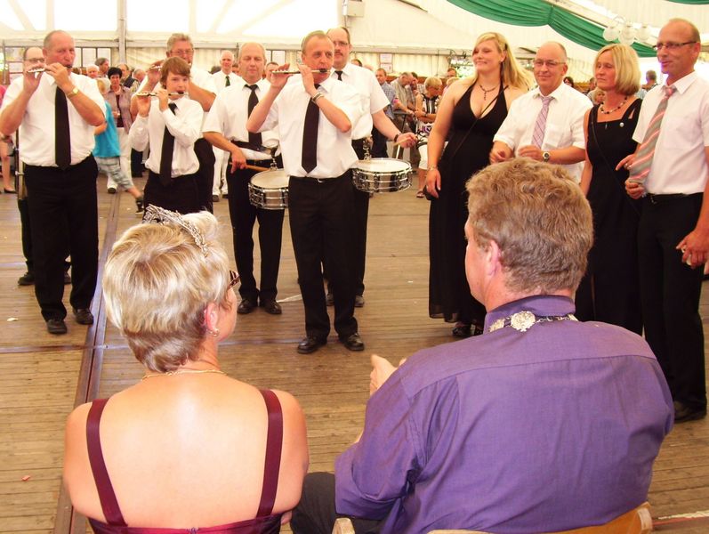 Zusammen mit seiner Königin Marita Weiling betrat der neue Börnster König neben dem Ehrenpaar Sandra Wieschhörster und Josef Weiling am Abend das proppenvolle Festzelt. Gefeiert wurde zu den Klängen der Band Motion wie schon beim Ball am Samstag bis in den frühen Morgen hinein, und auch beim abschließenden Frühschoppen am Montagnachmittag war die Stimmung im Zelt bestens. „Vom einleitenden Festgottesdienst mit dem Pfarrdechanten Markus Trautmann bis zum abschließenden Dämmerschoppen haben wir ein richtig fröhliches Fest gefeiert“, kommentierte Vorsitzender Heinz Potthoff das Festival der Börnster Schützen.