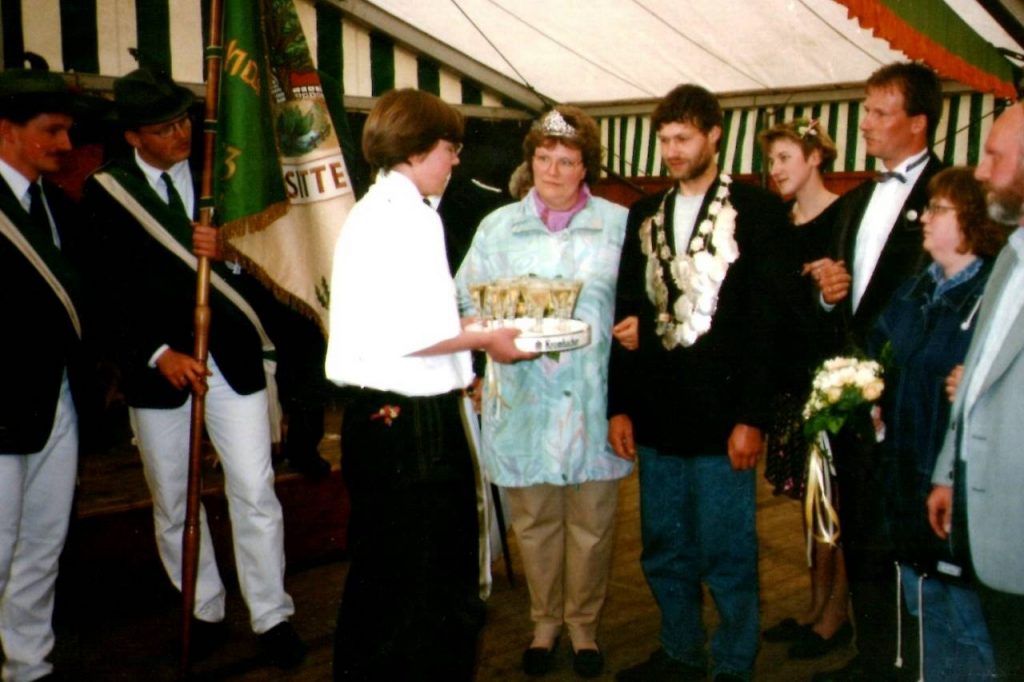Unter starker Beteiligung der Jungschützen wurde dann um die Königswürde geschossen. Mit einem gezielten Schuß stand um 16.35 Uhr der neue König fest. Norbert Lücke blieb strahlender Sieger unter den vielen Königsanwärtern. Um 20.30 Uhr eröffneten König Norbert und Königin Margret den abendlichen Königsball.