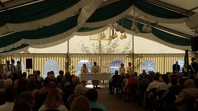 Der Auftakt des Schützenfest ist wie immer mit der heiligen Messe im Zelt.